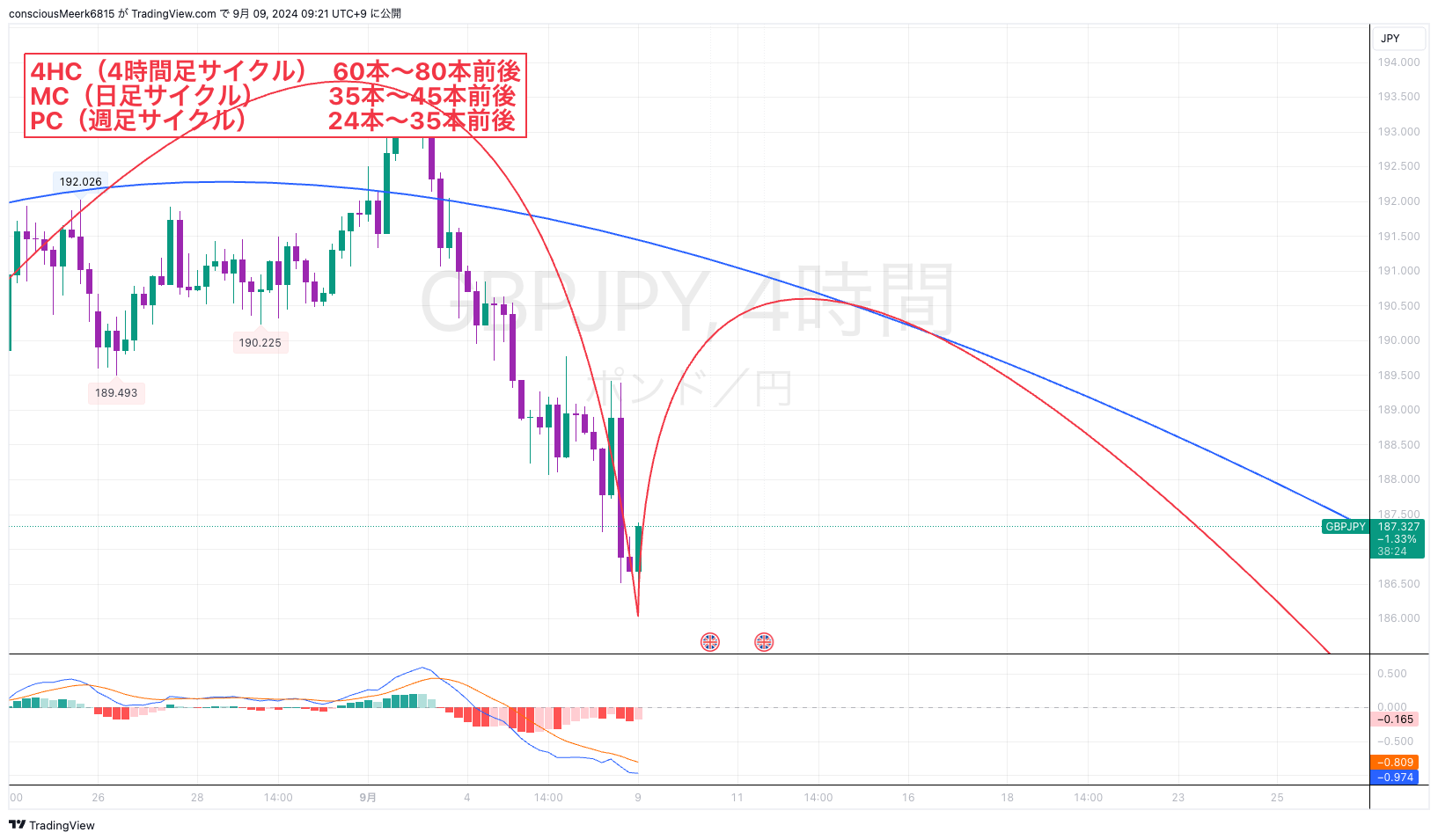 ポンド円分析 相場予測FXリアルタイム相場分析 【短期ボトム!】でも常に天井に警戒を! こんにちは(^^)/ 本日の記事の更新です(^^)/ 本日はポンド円について分析予想していきますね。 《4時間足チャート》 4HCは赤のシナリオです。 つまりサイクルがスタートしたというシナリ... 2024年10月1日