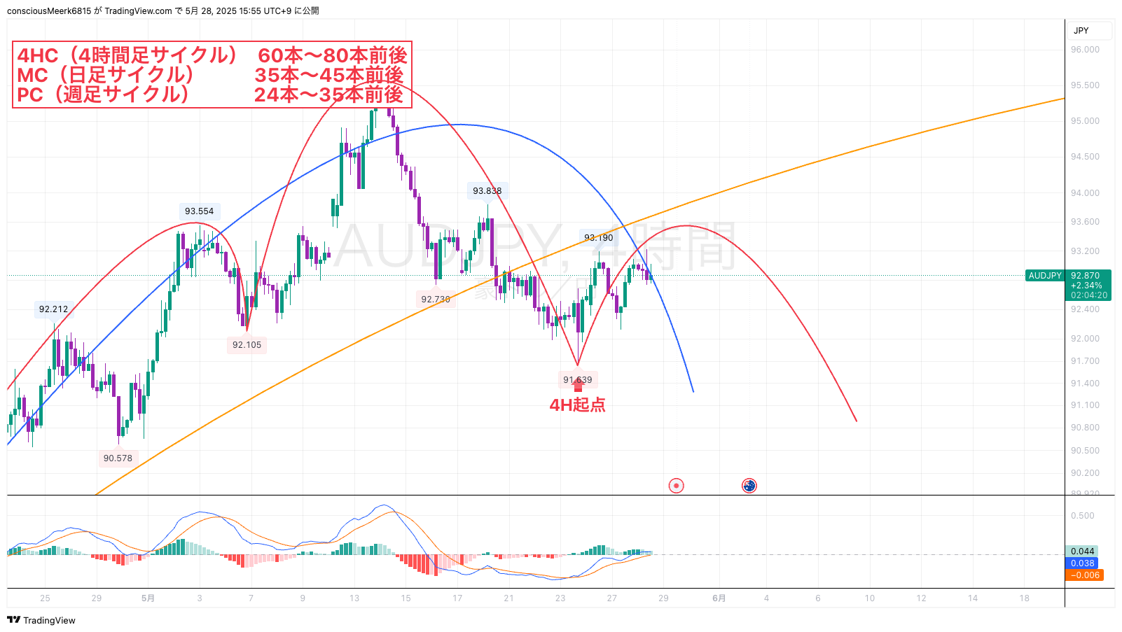 豪ドル円分析 相場予測FXリアルタイム相場分析 📈【豪ドル円 4時間足】4HCスタート直後?注目は「天井からのショート」 こんにちは(^^)/ 本日の相場分析記事を更新しました✨ 【豪ドル円相場分析】4時間足チャート 豪ドル円(AUD/JPY)の4時間足チャート(4HC)は、「赤のシナリオ」で分析しています。 直近... 2025年5月28日