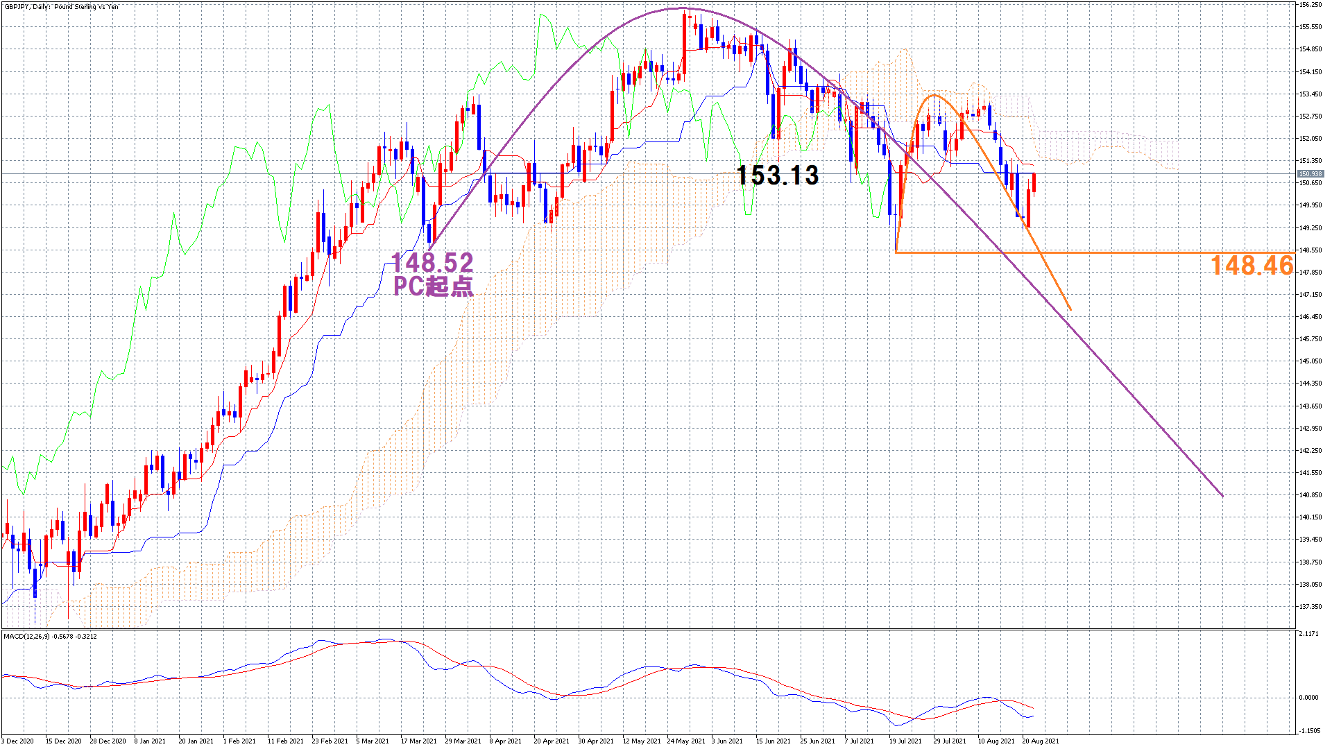 そしてポンド円は、既にPCがレフトトランスレーションを確定しているので、長期トレンドも下落トレンドです。