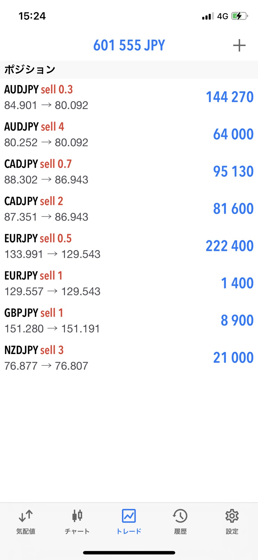クロス円はまだ下落の可能性が残っていたので、先日高値更新をして損切にかかった豪ドル円とNZドル円を再度売りエントリーしました。