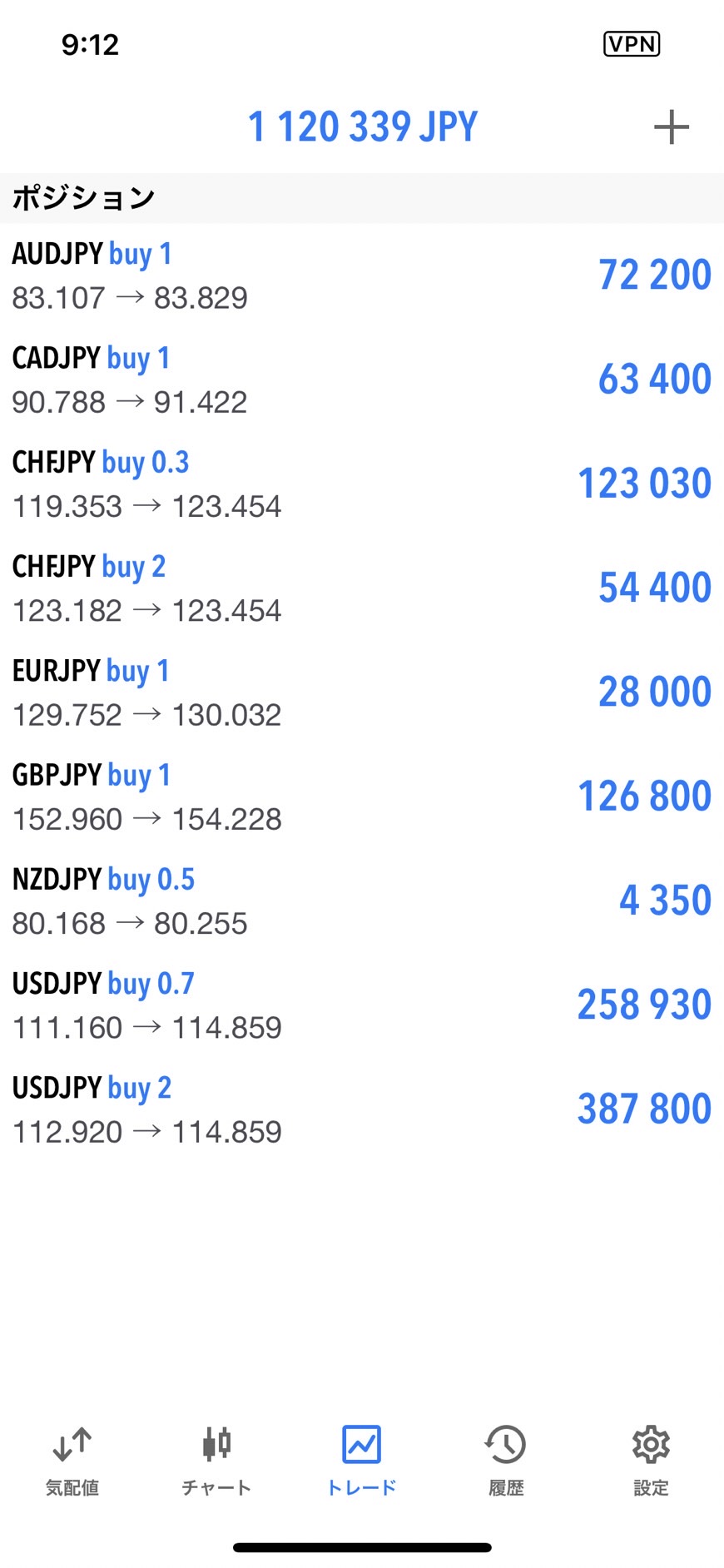とりあえず、スイス円とユーロ円は遅行銘柄の想定なので、ロング保有で様子見していきたいと思います!