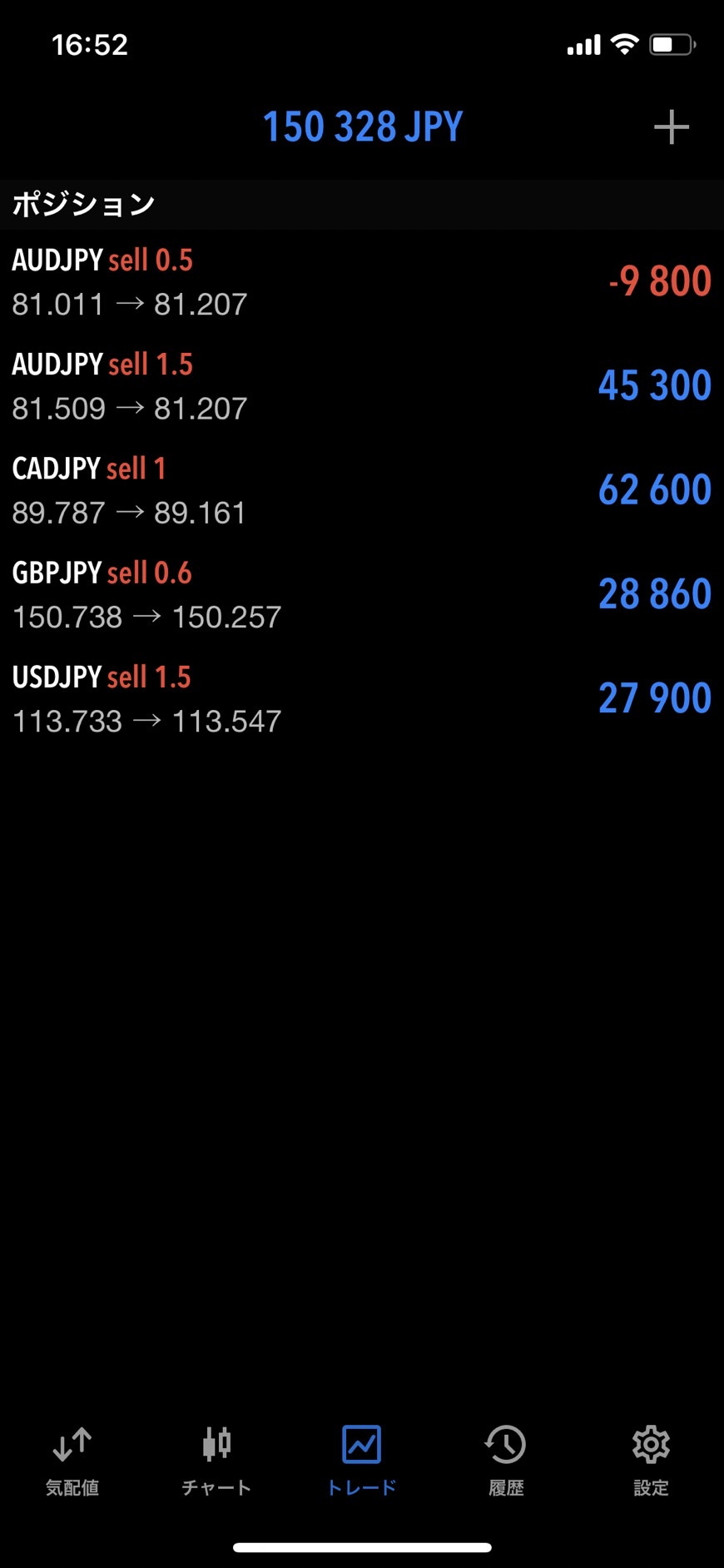 特に変化はありませんので、豪ドル円は下のポジションの利益が乗れば、決済をして、他銘柄は戻しがあれば追加売りエントリーなども検討していきますね!