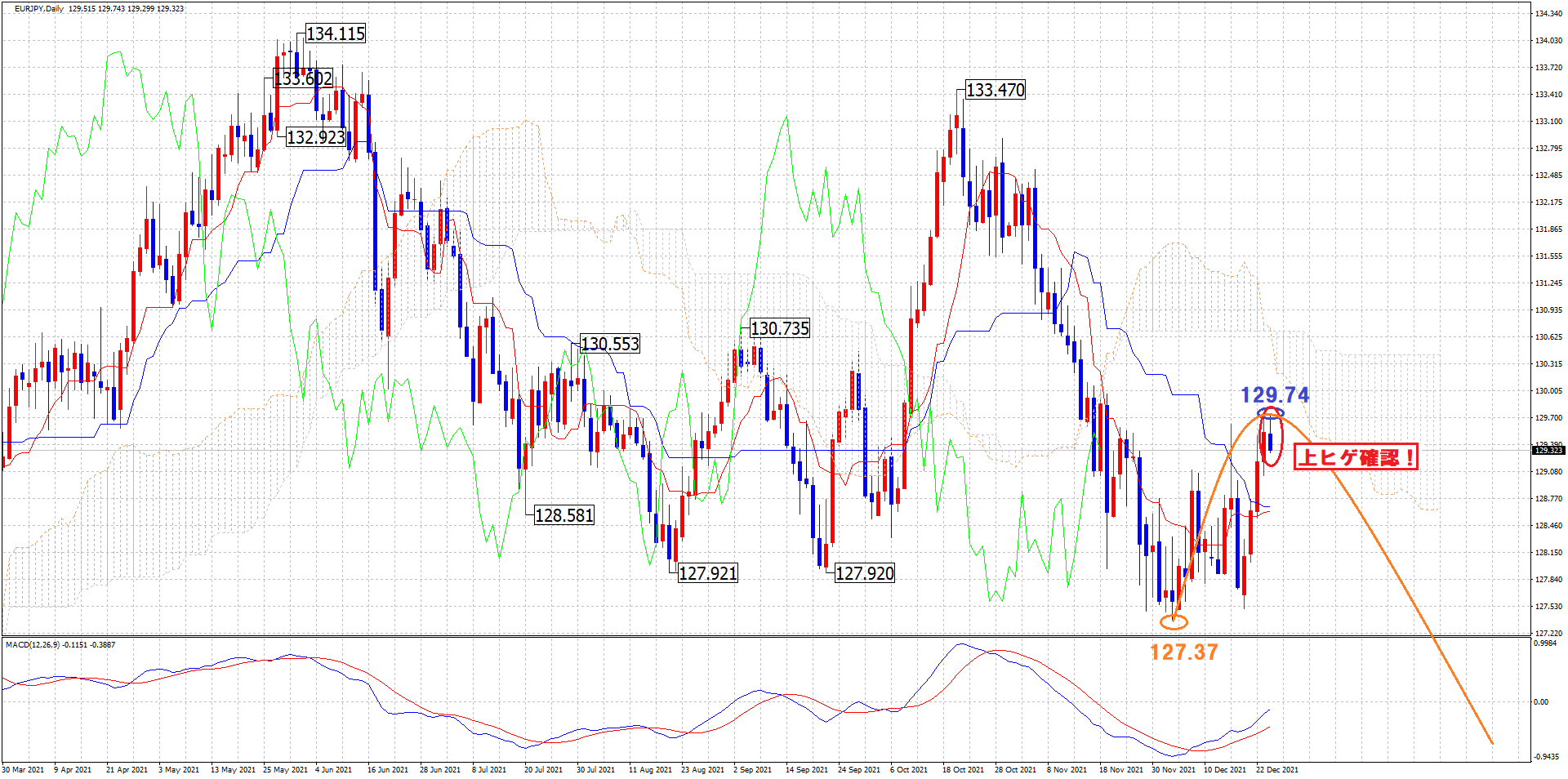そして、この日の日足は上ヒゲを完成させているので、4HCトップの可能性があります。