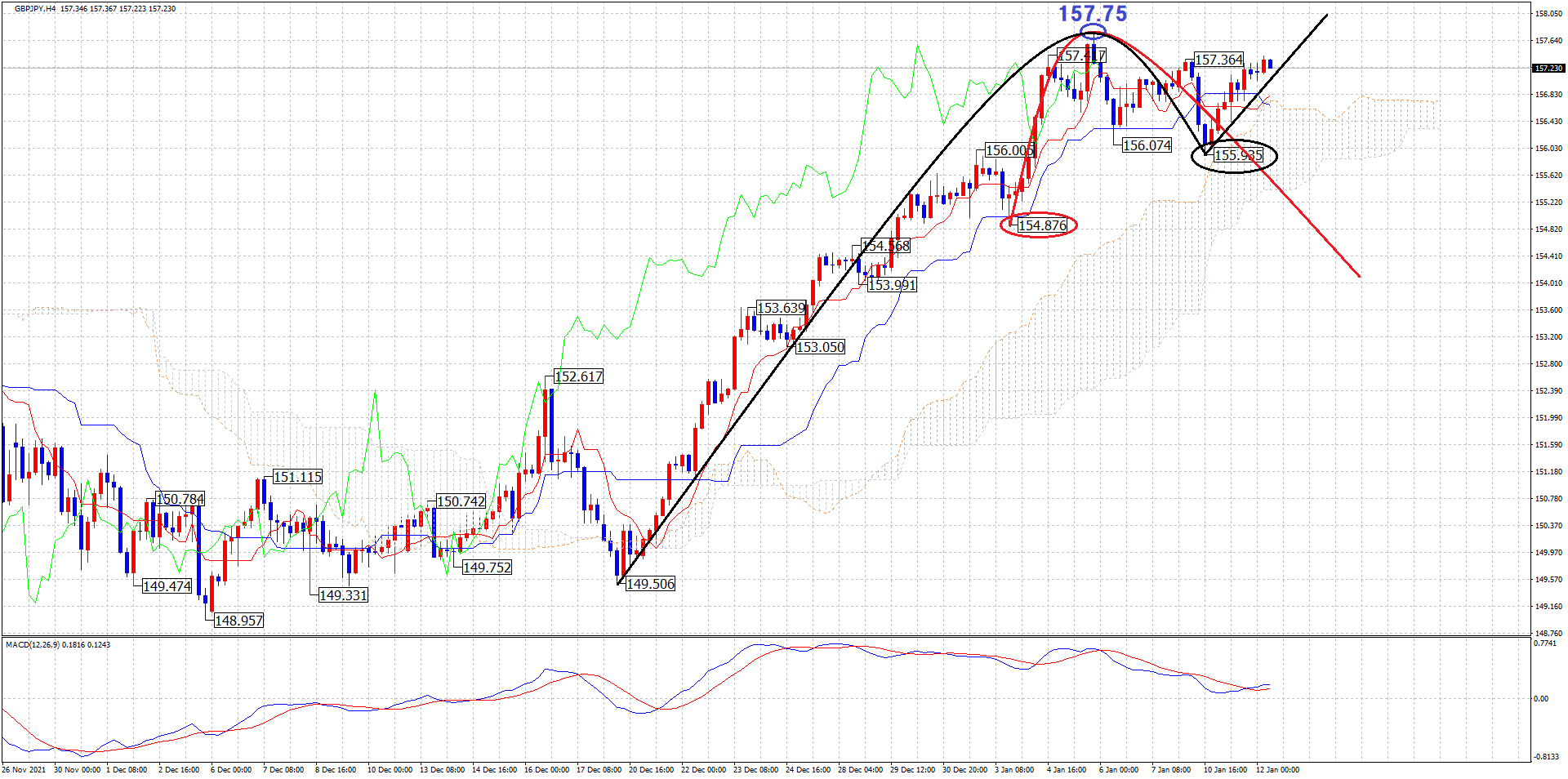 そして、各クロス円直近安値を付けてから上昇勢力が強くなってきているので、直近安値が起点のシナリオも視野に入れておく必要があります。