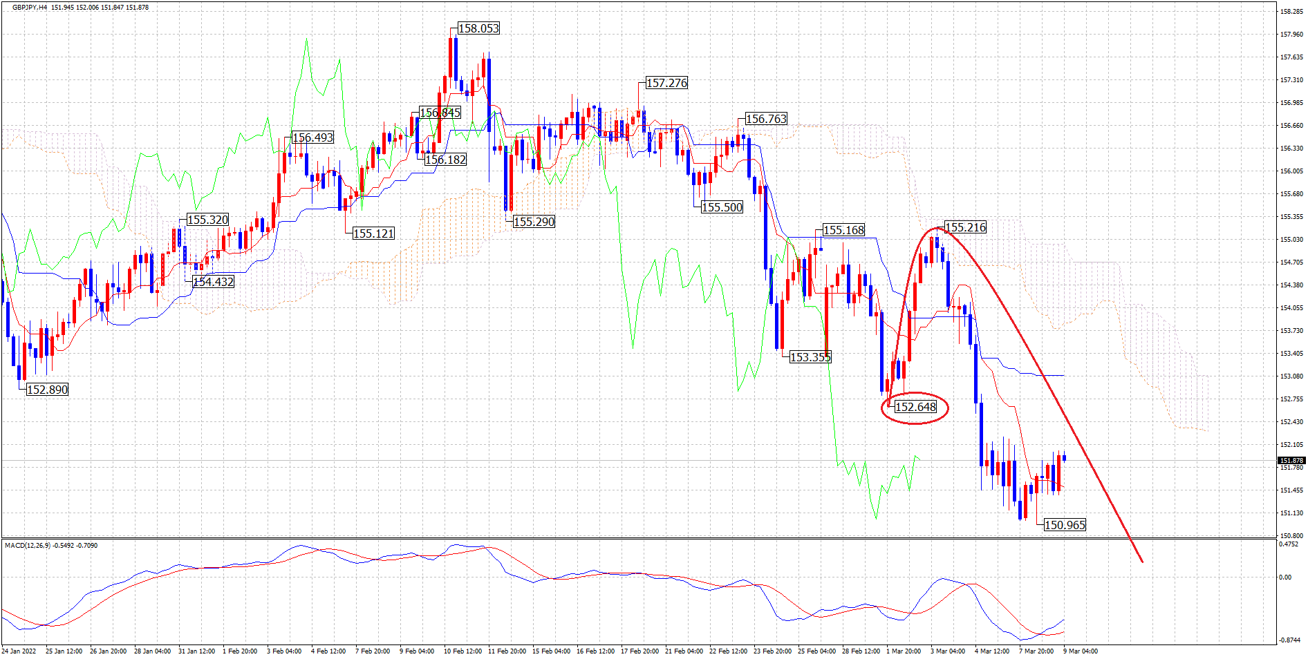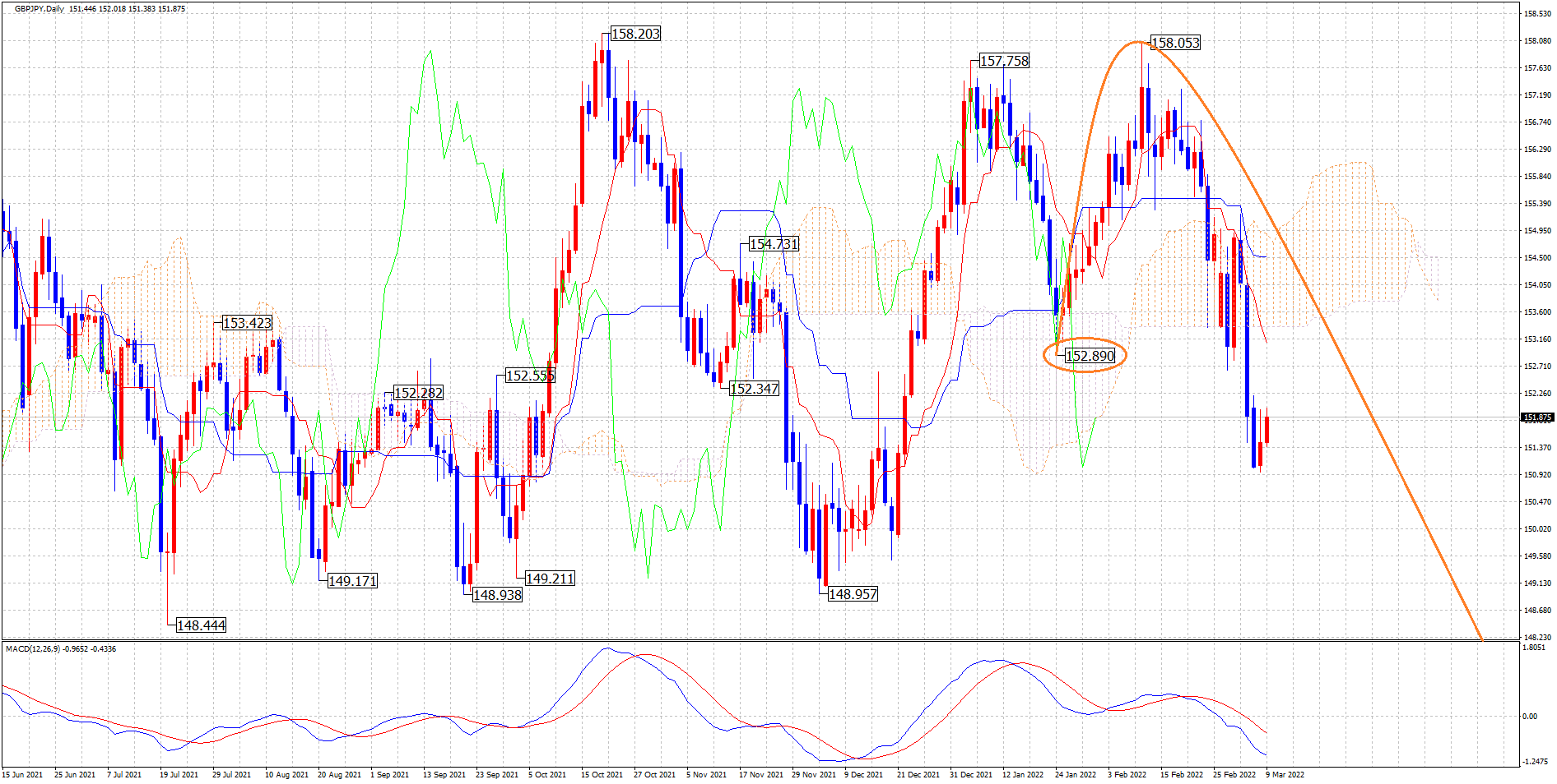 クロス円は一旦直近安値を付けてから上昇の勢いが強くなっている銘柄もありますが、既にレフトトランスレーションを確定しているポンド円は変わらず続落の想定です。