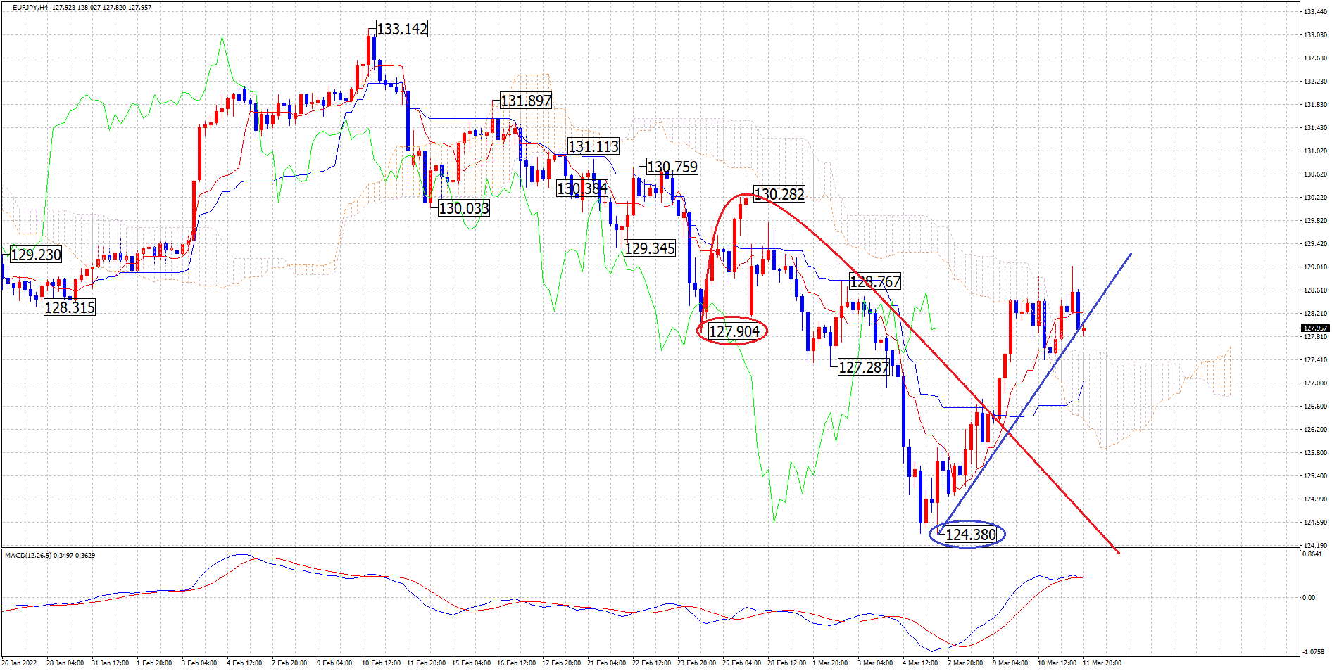 以前想定していた、127.28が起点のシナリオは高値の128.76越えを見たので消滅しました!