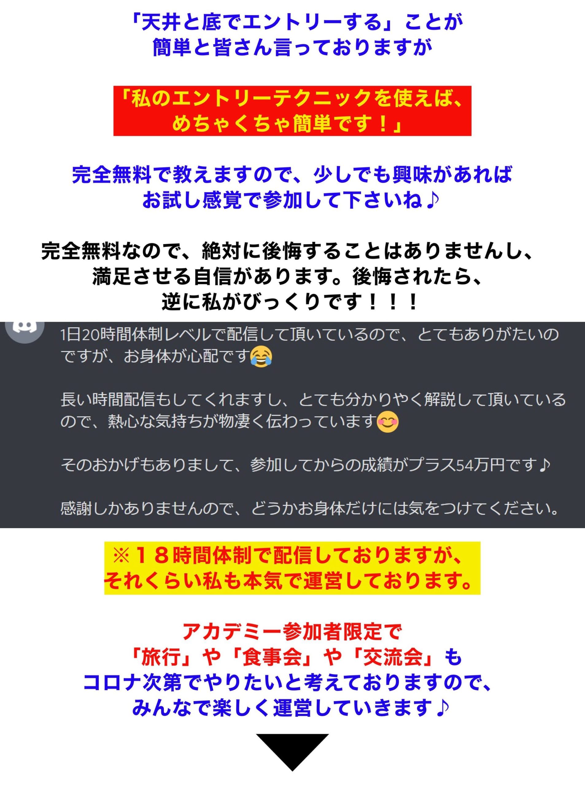 ただ、何もわからないうちにそれをしてしまうと、すべて私頼りになってしまい、皆さまのレベルが上がらないと思っていたので、まずは皆様に私の手法や考え方を理解して頂こうと思い、エントリー配信などはあえてしませんでした。
