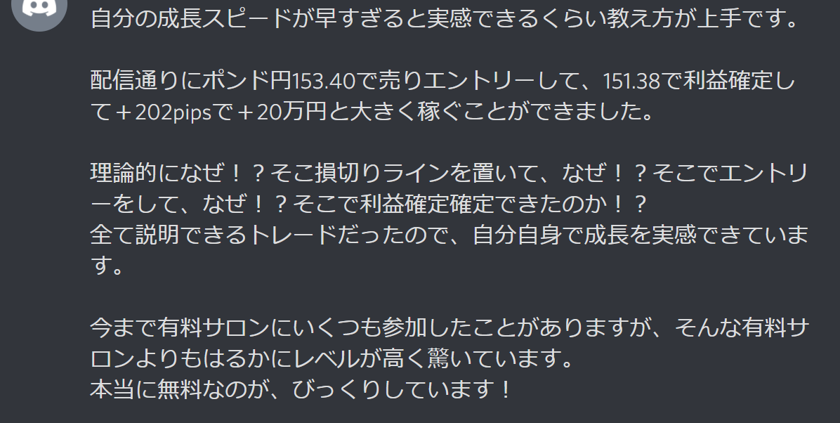 お手本として、リアルタイムで「エントリーポイント・損切りポイント・利益確定ポイント」を配信していくので、稼ぎながらそのタイミングをリアルタイムで学んで下さい。