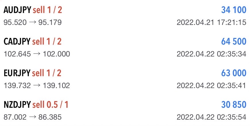 既に他銘柄のクロス円のショートを保有しており、分割決済しておりノーリスクなのであとはのんびり利益拡大を狙って保有していきますね👍