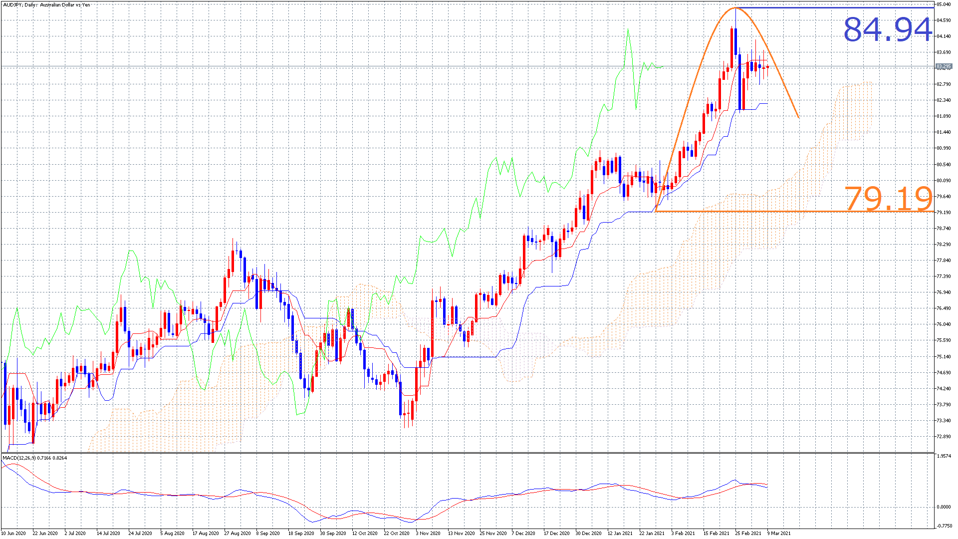 豪ドル円は既に天井から離れているので、新規エントリーは私は次のチャンスまで待とうと思います(^^)/