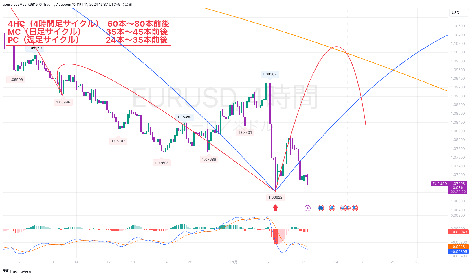 なので、現在は4HCトップに向けての上昇に位置していると見ております。