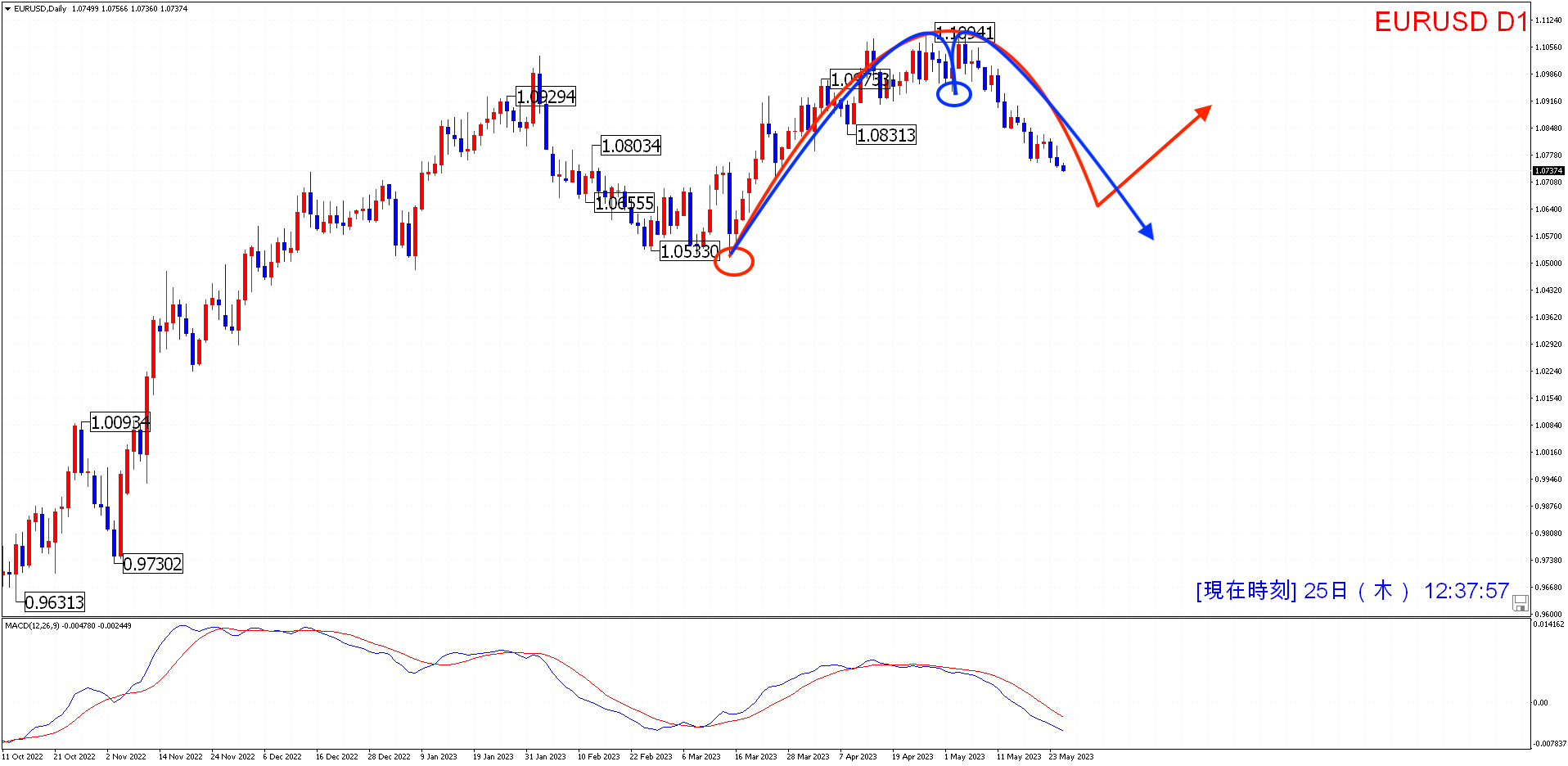 そして、日足がレフトトランスレーションを形成しているという事は週足が天井を付けている可能性が高いです。