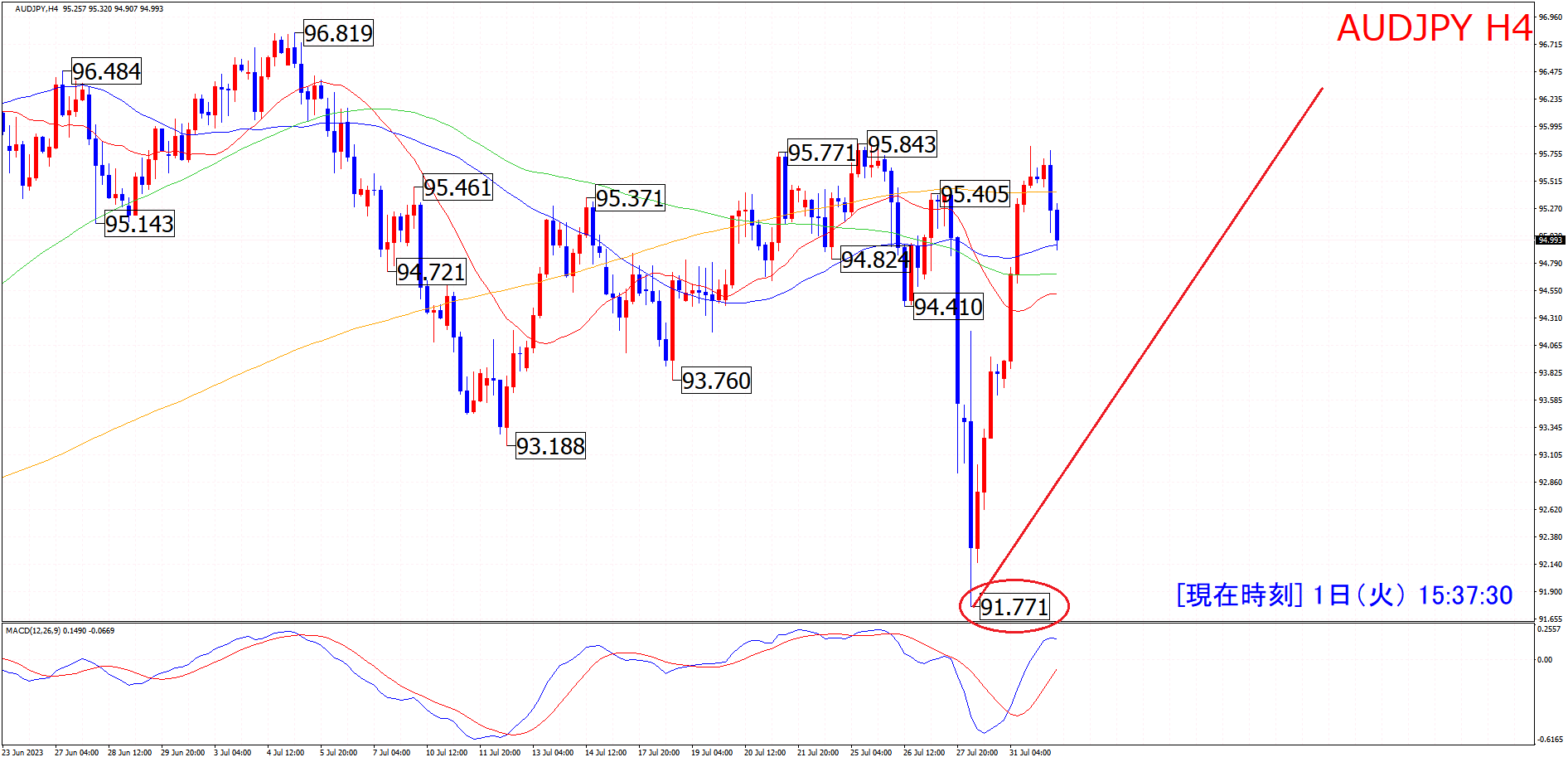 ただ、現状日足がすでにボトム時間に突入していてて下落の時間的な余裕がありません。