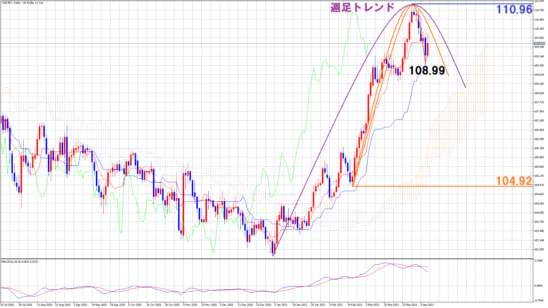 ただし、108.99は比較的相場が反転しづらい木曜日につけている安値なので、反転しやすい月曜日に再度安値を更新していく可能性も想定しています(^^)/