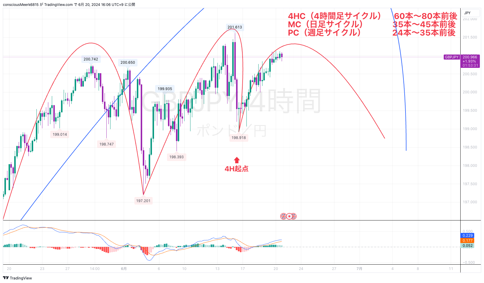 日足のイレギュラーを起こしている場合は今回の4HCの起点でMCがスタートしています。