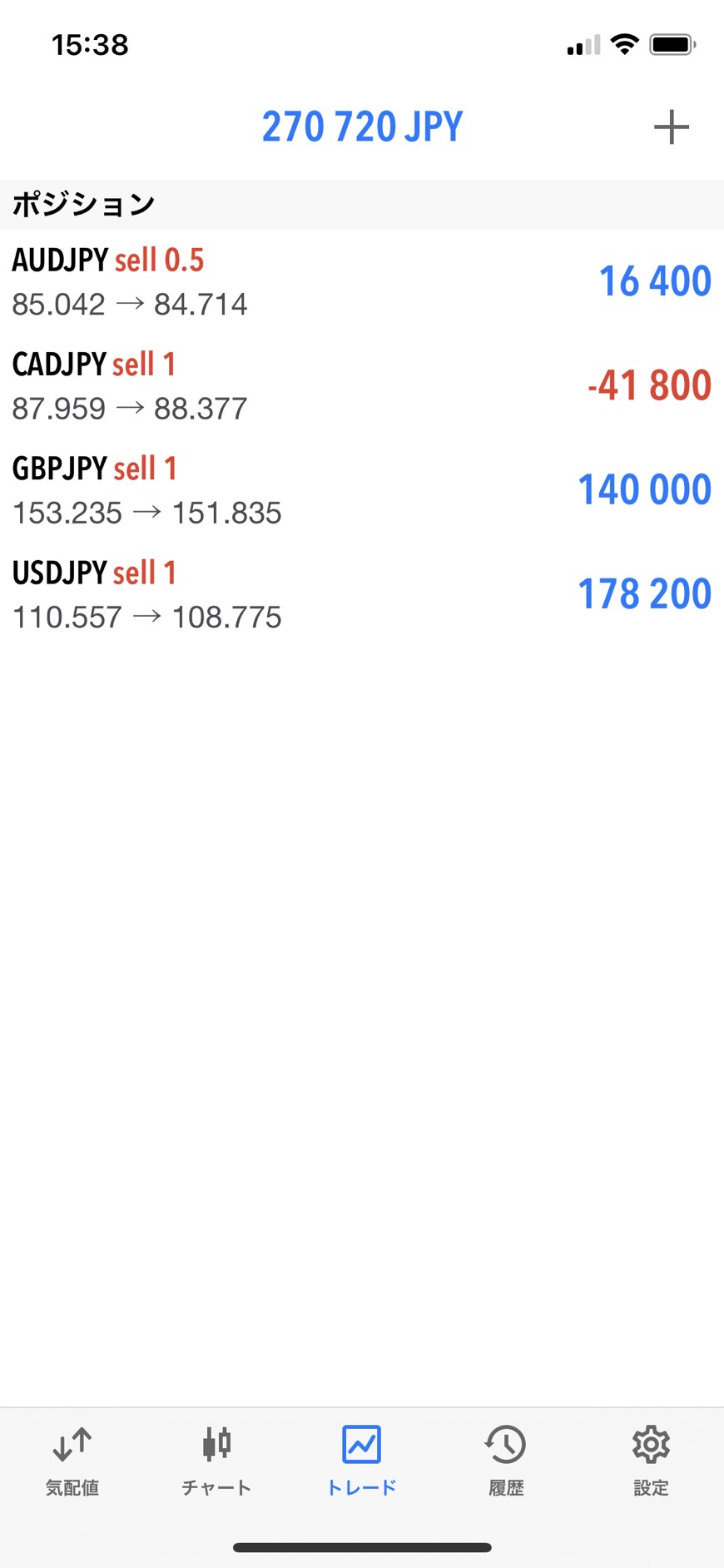 加ドル円が含み損になっていますが、既にポジションの半分を利確しているので、損切にかかるまで放置していこうかなと思っています(^^)/