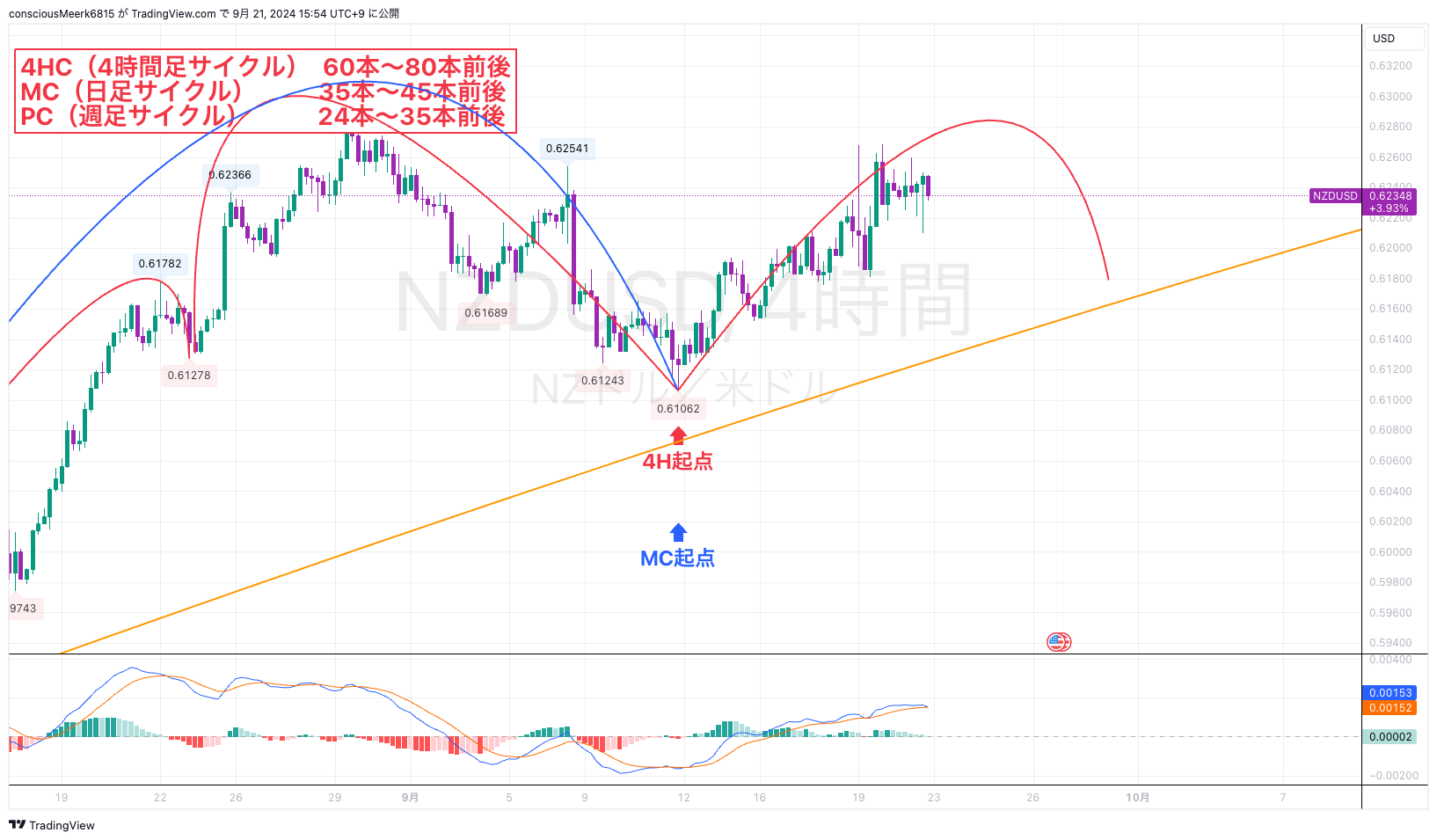 ただ上記のシナリオの場合MCは今回の4HCボトムあたりでボトム時間に入ります。