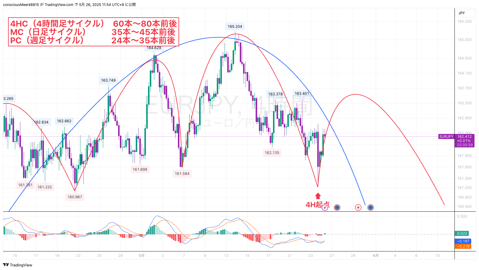 その影響で、これまで想定していた「日足がダウントレンド継続中」というシナリオは、現時点では成立が難しく、むしろ日足が短縮サイクルでボトムをつけ、アップトレンドに転換している可能性を視野に入れるべき状況になっています。