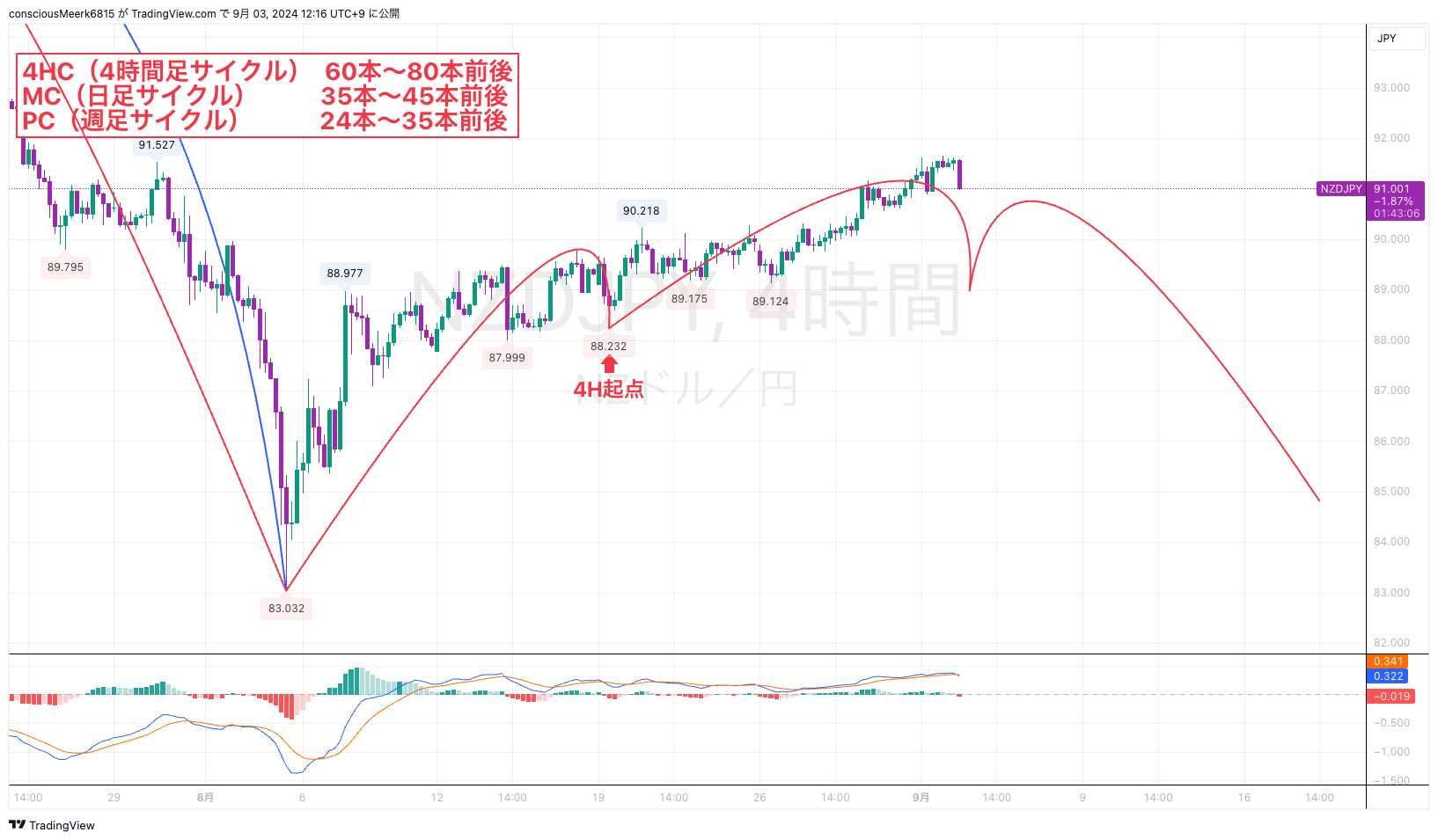 ➡ MC(メジャーサイクル)の天井接近 を示唆